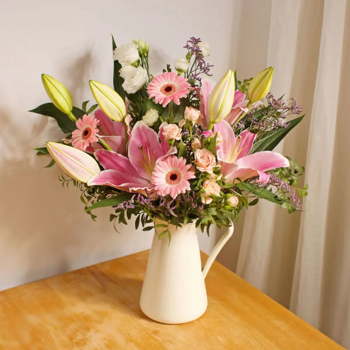 Indulge in the exquisite charm of our Blazing Beauty bouquet, a dazzling ensemble featuring Craspedia, Gemini, Tulips, and Roses, meticulously selected to infuse your home with vibrant elegance.